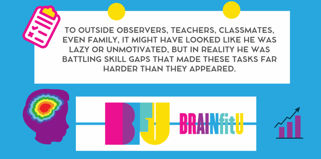 When this student began training at BRAINfitU, he was entering fourth grade unable to read and without any formal diagnosis or access to special services. His parents knew something was wrong, but hadn’t been given clear answers or support.